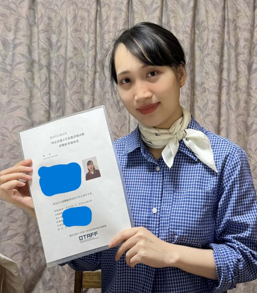 飲食料品製造業 特定技能2号評価試験に合格したアインさん
